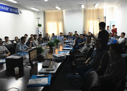 接着,中海达旗下武汉海达数云技术有限公司的华北大区经理贾文龙作了题为《三维激光及移动测量实训室走进校园》的报告。现场,技术人员利用相位式三维激光扫描仪采集了会议室的点云数据,并与在场的老师在三维激光技术以及配套软件功能等方面进行了深入交流。