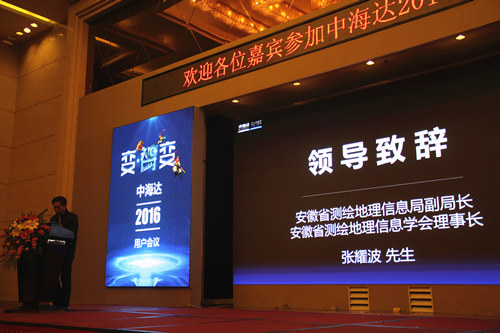 下午2点,会议正式开始,安徽省测绘地理信息学会理事长张耀波为本次大会致辞,他对中海达近些年为测绘行业带来的革新表示肯定,并极力推荐广大测绘用户选用中海达产品。