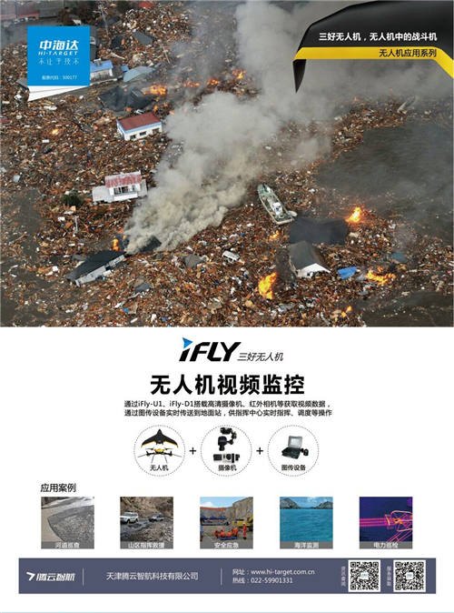 用户可通过中海达iFly-D1多旋翼无人机和iFly-U1固定翼无人机搭载高清摄像机/红外相机等设备进行视频数据获取,支持实时高清回传功能,传输范围支持15km及30km两种规格;广泛运用于安防、应急、电力、警用、海洋等领域。