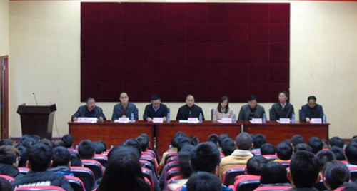 安徽理工大学测绘学院党委书记陈艺在总结发言中感谢学校和中海达合肥分公司对学院学生培养工作的大力支持,鼓励同学们从理想信念、思想修养、专业学习和社会实践出发,努力学习,争做高素质创新型人才。