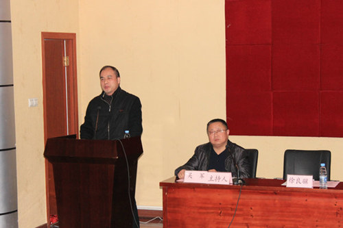 安徽理工大学测绘学院教学科研副院长徐良骥宣读表彰文件
