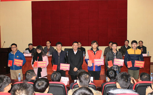 中海达测绘奖学金由中海达于2014年设立,本次共有9名学生获奖。邾凯总经理对获得奖学金的同学们表示热烈祝贺,并对中海达的发展理念进行了阐述,对安徽理工大学测绘学院培养的毕业生的表现表示肯定,并对在校大学生提出了殷切希望:希望同学们努力学好专业知识,树立远大理想,学会感恩,学会做人,发扬吃苦耐劳、拼搏奋斗的精神,希望今后进一步加强校企合作,通过鼓励、奖励优秀学生,为国家经济建设输送更多的优秀毕业生,同时祝福测绘学院的明天更美好。