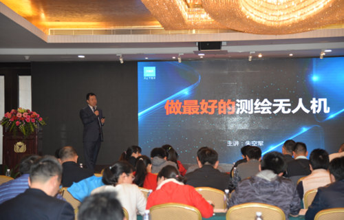 会议正式开始,中海达总裁徐峰做开场致辞及公司介绍,期间就深耕测绘无人机市场主题做出详细介绍。