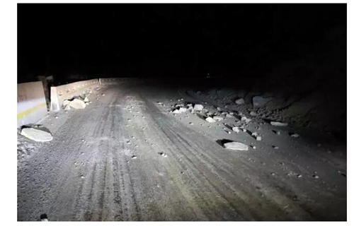 震后道路两旁碎石