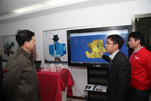 1月10日,湖北省副省长郭生练、文化厅厅长雷文洁、东湖高新区党工委胡立山书记、科技厅副厅长彭泉等一行莅临武汉海达数云技术有限公司进行科技与文化融合发展情况的调研和指导。在海达数云常务副总经理刘守军、高级顾问王少华的陪同下,郭生练副省长一行参观了海达数云的高精度三维激光扫描仪等核心技术产品和在文化遗产数字化保护与传播领域的工作成果。并亲自佩戴3D眼镜游览了海达数云虚拟博物馆,体验虚拟现实技术带来的新奇感受。