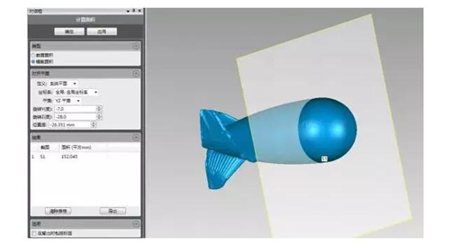 建模之后提取截面,量测所截轮廓半径及截面面积