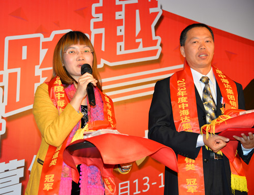此次颁奖典礼共表彰超过30位销售精英,除颁发了年度销售十强、优秀利润中心、优秀销售机构等常规奖项,本年度特别增设大项目特别贡献奖,分别奖励在移动GIS、三维激光移动测量以及北斗CORS三大业务项目有特别贡献的销售人员及机构,奖金奖品丰厚,包括宝马汽车及超过1000万奖金。同时,本年度增设渠道销售冠军,来自国际贸易部梁伙连夺此桂冠,与获得直销体系销售冠军詹光勇(广东销售部)同台接受廖定海董事长颁发的10万元现金大奖。