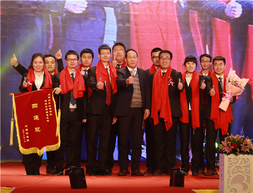 廖定海董事长与获得销售四连冠的石家庄分公司合影