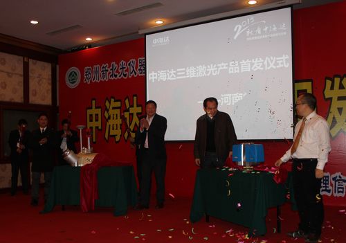 会上,河南省地理信息中心主任李向阳、河南省测绘地理信息局原测管处处长贺奕和中海达副总裁兼市场策划总监胡炜、海达数云市场副总经理陈海佳一起,为中海达两款三维激光新产品——三维激光扫描仪、iScan一体化移动三维测量系统揭幕。两款新品吸引了无数与会嘉宾的注意,成为会议的最亮点。