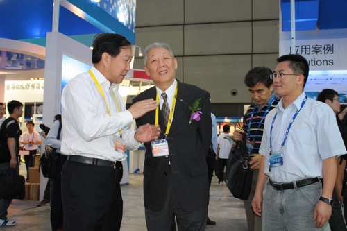 在第二届中国卫星导航学术年会上,“两弹一星”功勋科学家、国家最高科学技术奖获得者、北斗卫星导航系统工程总设计师、本届年会科学委员会主席孙家栋院士参观了中海达展台,对中海达产品表示肯定,并和廖定海董事长进行了亲切交谈。