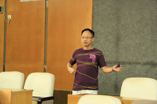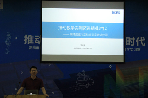 郑州联睿电子科技有限公司营销副总监梁志豪作《高精度室内定位实训室走进校园》主题报告