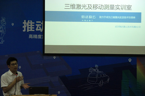 武汉海达数云技术有限公司大区经理刘俊作《三维激光及移动测量实训室》主题报告