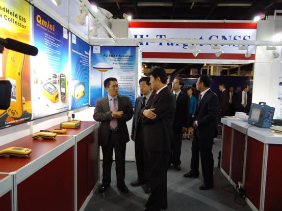 展会期间,国家测绘局局长徐德明亲临中海达公司展位参观视察。徐局长认真了解了各种产品并听取中海达徐峰副总经理的企业情况汇报。当了解到中海达多年来积极走出国门开拓国际市场,并取得较好的市场业绩和影响时,徐局长非常高兴,他勉励中海达不断提高测绘产品技术水平和质量,将具有我国自主知识产权的测绘技术和产品打入国际市场,提升中国测绘品牌的国际影响力,为推动我国从测绘大国迈向测绘强国贡献力量。