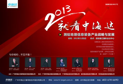 由广州中海达卫星导航技术股份有限公司主办,广州市中海达测绘仪器有限公司、广州中海达定位技术有限公司、苏州迅威光电科技有限公司、武汉海达数云技术有限公司协办的主题为“2013,就看中海达!”的测绘地理信息装备产业战略与发展会议,将于11月1日下午14:00在西安曲江国际会议中心一楼百合厅召开。这是上市后,中海达首次大规模召开的高端行业性技术与市场探讨交流会。届时,中海达高管将对测绘地理信息装备产业的发展进行回顾与解析,并结合中海达的切身经验,探讨新形势下,测绘地理信息企业该如何做大做强!
