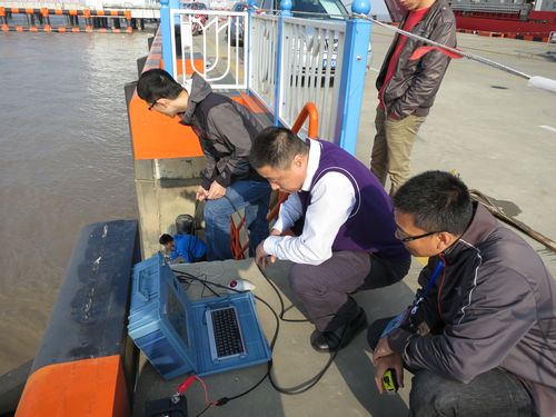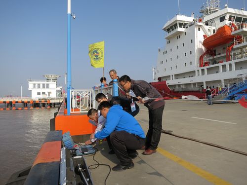 南极科考队员正在用中海达HD370全数字变频测深仪测试码头水深