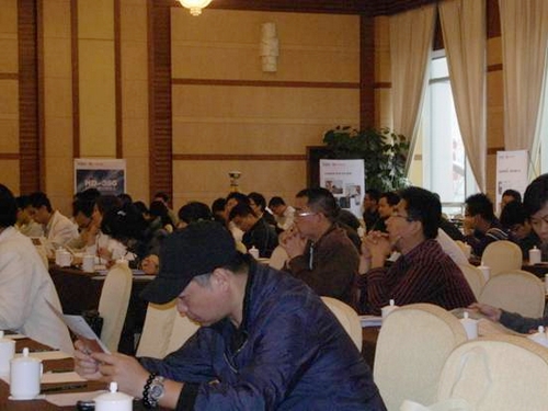在新产品发布的环节,华东技术主管丁威详细介绍了公司的RTK和系统工程等系列产品,并现场演示了V30超强的三防性能,现场效果反映热烈,也使中海达产品的品质得到了广大来宾的认可。