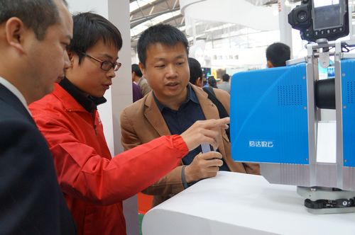 中海达工作人员为嘉宾介绍中海达最新产品三维激光扫描仪