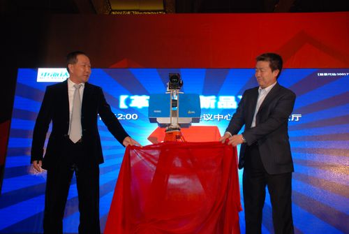 中海达廖定海董事长(左)与陕西测绘地理信息局局长武文忠(右)共同为中海达自主知识产权三维激光扫描仪揭幕