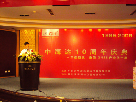 2009年9月10号中海达十周年庆典成都会议在成都西藏饭店隆重召开,来自国土、电力、测绘、石油、地矿、GIS、高校等行业领导和客户近300人参加此会议。