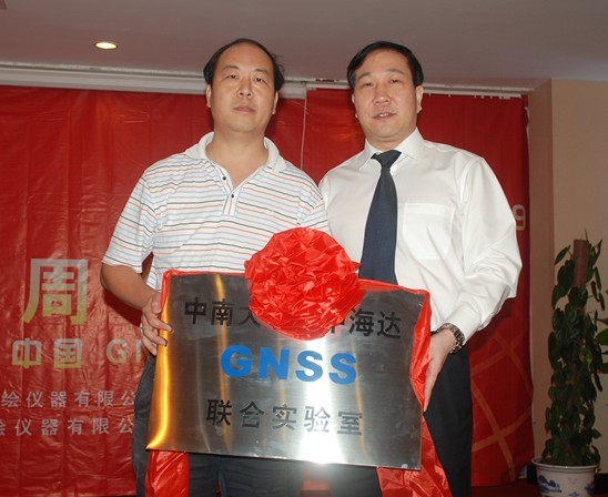 9月8日中海达十周年庆典长沙会场,“中南大学-中海达GNSS联合实验室”暨中海达向中南大学GNSS设备捐赠仪式在一片热烈掌声中举行。中海达总经理廖定海先生、中南大学测绘与国土信息工程系主任邹峥嵘教授共同将“中南大学—中海达GNSS联合实验室”的牌匾隆重亮相,引起与会嘉宾的热切关注。邹峥嵘教授现场发表精简感言:祝福中海达十周岁生日快乐,祝庆典会议会议圆满成功;感谢中海达对测绘高等教育的大力支持;期望中南大学能继续向测绘届及中海达源源不断的培养优质测绘专业人才!