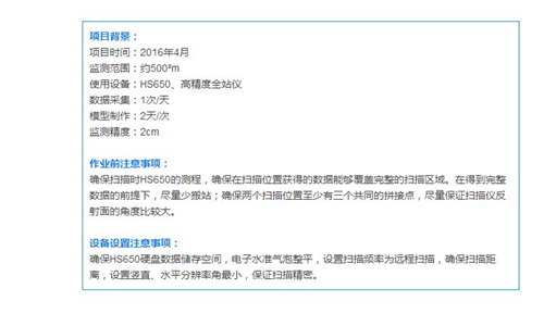 传统变形监测手法可以测量到比较精确的点位位移,但观测时间较长,无法实施三维整体监测,只能采集单点数据,数据量非常有限,不能很好的对滑坡做好勘查、监测工作。而要获得全面而精确的滑坡数据,并用于对滑坡进行勘查与监测、预报则更为困难。
