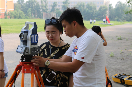 本次比赛为全站仪碎步点采集比赛,每组比赛选手完成架设仪器、设站、定向、测点、内业记录五项操作,以时间、操作规范、测点精度为评分标准。