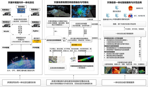 据了解,一体化综合减灾智能服务研究及应用示范项目基于地理信息技术,集成北斗网、通信网、互联网和传感网等多种信息载体,构建复杂灾害环境下以高精度室内外无缝定位、空间信息精准融合、应急场景一体化模拟、智能信息服务为核心的综合减灾技术体系,自主研制一体化、全流程综合减灾智能服务平台,针对不同灾害建立多层次的综合减灾应用示范系统,引领地理空间信息技术与公共安全技术协同发展方向。