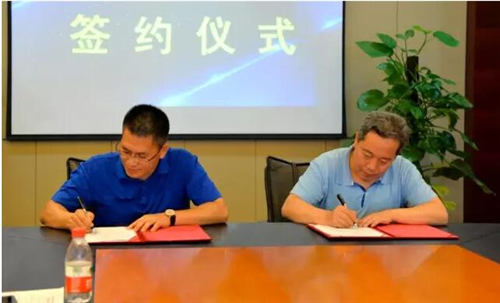 中海达总裁徐峰(左)与中国水科院副院长汪小刚签订合作协议
