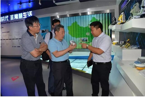 中海达定位公司总经理罗树江(右一)向嘉宾介绍产品