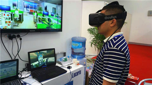 值得注意的是,此次展会上,联睿电子还开放了VR体验区。体验者头戴VR眼镜,技术人员手持定位标签在场内走动,通过系统已有三维模型,体验者就能获取技术人员轨迹周围的景象,看到对方身边的场景。这一体验让在场不少参展嘉宾点赞。