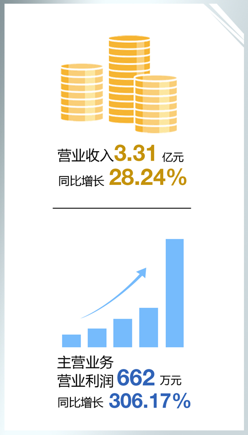 其中完成主营业务收入331,184,502.75元,较去年同期增长28.13%,实现营业利润6,616,731.67元,较去年同期增长306.17%,利润总额15,599,356.67元,较去年同期增长27.18%。