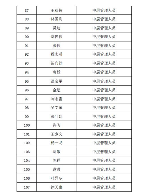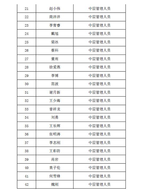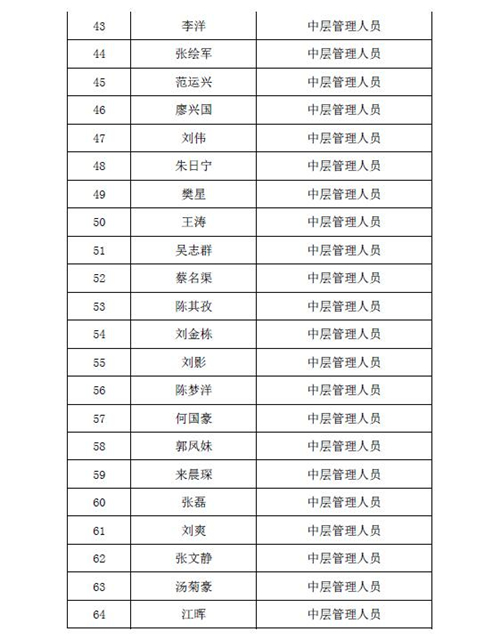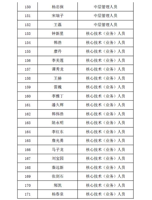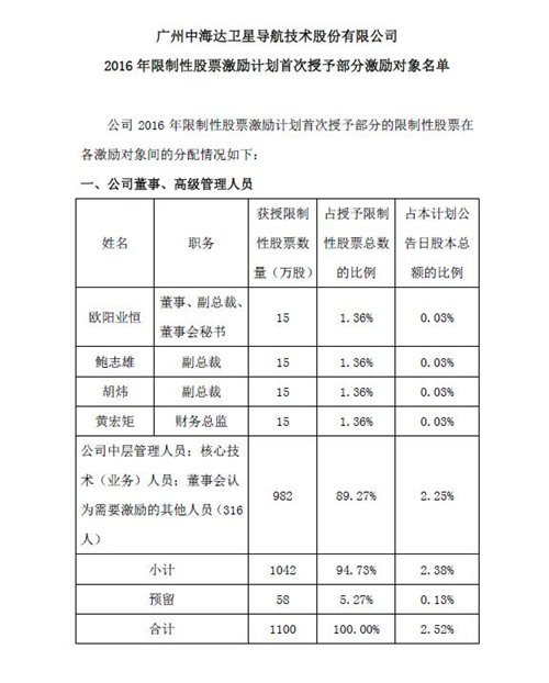 2016年股权激励计划激励对象名单公示