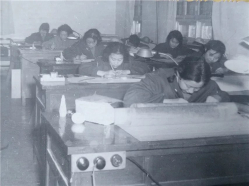 这是从年代最久远的一本相册中挑选出的照片。时间的流逝让画面有了些磨损,相纸背面墨水书写的文字早已难以辨识,而照片上的人物,周围的同事也都认不出来了。但这并不妨碍我们从那些俯身刻画的身影和全神贯注的表情中,感受到陕西五院建院之初,前辈们克服万难、艰苦创业的情景。提及陕西五院第一批干部职工,现在陕西五院的后辈们还都不吝赞美之词。他们精到的基本功和困难环境中的乐观态度,已成为陕西五院宝贵的精神财富一代代地传承下来。