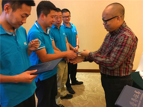 中海达副总裁胡炜向精英俱乐部成员授予荣誉证书