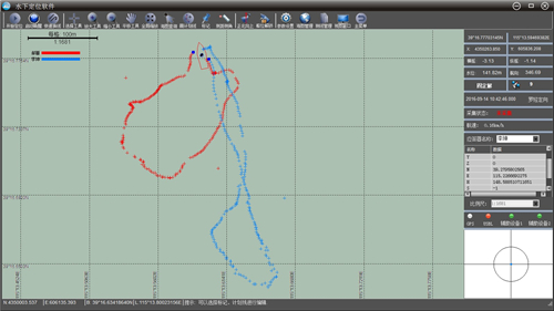 河北省易水湖是50年代利用四周高耸的山势而修建的一座人工湖。水面面积27平方公里,最深处48.5米,湖面游船较多,环境噪声强,而越是在声学环境复杂的情况下,越能体现出iTrack UB1000超短基线的优越性能。最终演示圆满成功,定位数据一直连续稳定解算。应答器的应答率高于98%。由于地形的限制,iTrack UB1000超短基线的最大定位斜距达到1600m。