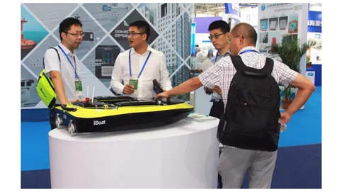 此次海洋公司展出的iBoat系列智能无人测量船可以根据搭载的不同的设备完成不同的任务。例如可以搭载水质取样箱、侧扫声纳、多参数水质分析仪等多种传感器,可以广泛应用于河流、航道、水库、港湾等区域水下地形测量和水文测量,实现常规或应急水质采样、水质监测、水文测量、航道测绘、暗管探测等业务。