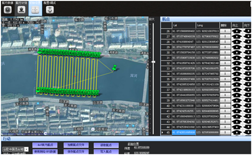 随后通过架设基站和设置自动航线,无人船按照航线进行自动测量跑线。