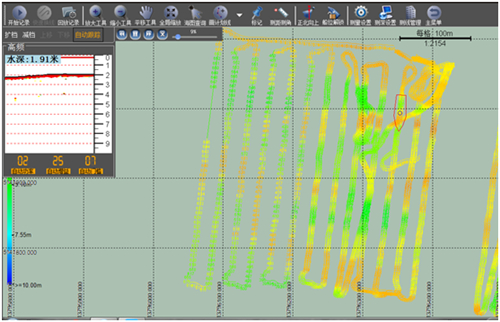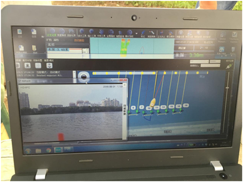在实际作业中,通过观察无人船控制软件,了解船的动态,通过监测测深仪软件的实时数据采集,同时还可以通过视频了解河对岸的情况。