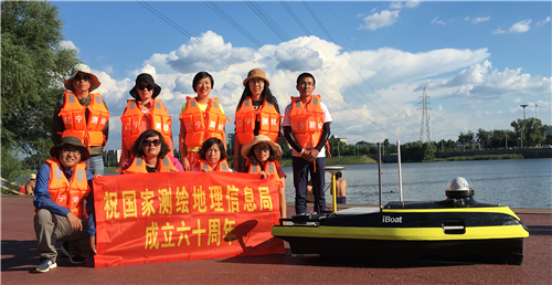 培训时,正值国家测绘地理信息局建局60周年,中海达与第一测绘院的测量工程师携iBoat BM1智能无人测量船共同送上祝福!