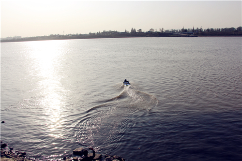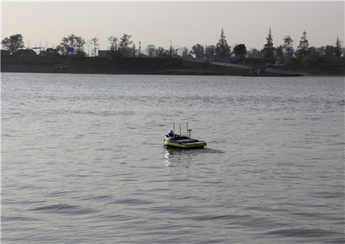 今日,南京长江夹江边,一艘长180厘米、宽84厘米、高48厘米的无人船行驶在江面上,激起阵阵水花。