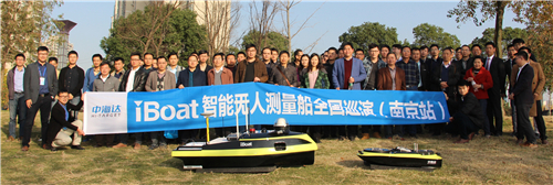这就是江苏中海达海洋信息技术有限公司(下称中海达海洋公司)iBoat 智能无人测量船全国巡演首站——南京站的演示现场,此次巡演共邀请了来自航道局、水文局、测绘局以及相关高校等30多家单位、近70位专家领导进行现场考察。