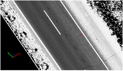 再使用高精度车载三维激光移动测量系统,精确扫描并获取道路面的激光点云数据。通过前期设置好的控制点,进行高程纠偏,保证激光点云数据的精度控制在改扩建行业标准范围内(水平精度优于5cm,高程精度优于2cm)。