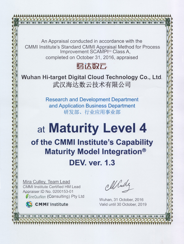 近日,中海达旗下子公司武汉海达数云技术有限公司(下称海达数云)正式通过CMMI4级认证评估,这意味着海达数云软件管理体系日臻成熟,对研发过程的控制能力与目标达成能力实现了再一次飞跃。