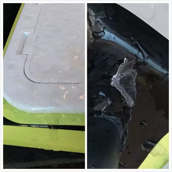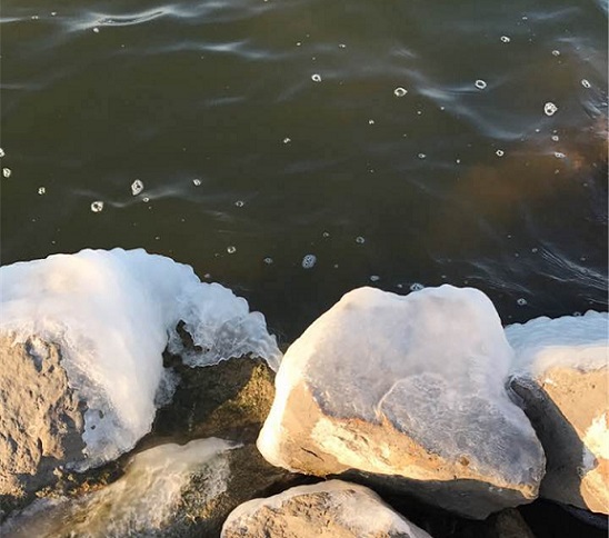 测试结束后附着在船体上的冰水混合物