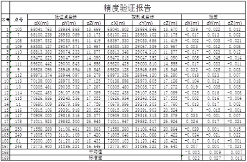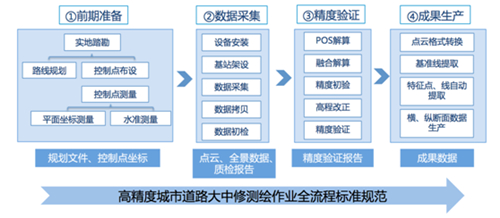 成果精度:平面5cm、高程3cm(道路横纵断面/高程网格点);1:500路面地形图;