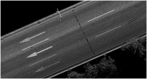 项目成果:高精度三维点云、1:500路面地形图成果、道路横纵断面、高程网格点