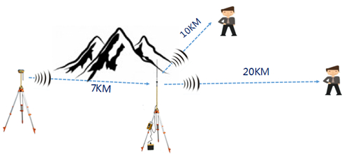 电台中继:测量作业中常遇到超出电台作业范围或中间有遮挡(如山头)的情况,HDL全能星电台可将接收到的基站电台信号,通过电台中继功能转发给移动站,从而大大延伸电台的作业距离。