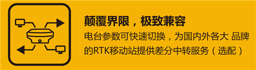 网络中继:内置4G全网通网络通讯模块,可通过网络模式接收CORS或自架基站的差分信号,再通过电台将差分数据进行转发,实现CORS差分数据共享给同区域内的移动站,从而实现一个CORS帐号的多台移动站分流使用,为用户大幅降低使用CORS网络成本。