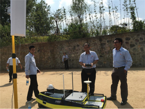 南宁测绘展上,在中海达董事长廖定海、总裁徐峰的陪同下,国家测绘地理信息局局长库热西和副局长李维森亲临中海达展位,并重点了解了iBoat 智能无人测量船。