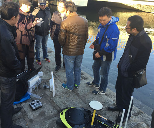 iBoat BM1智能无人测量船分别在城市狭窄内河、水文站以及横渡甬江进行演示。